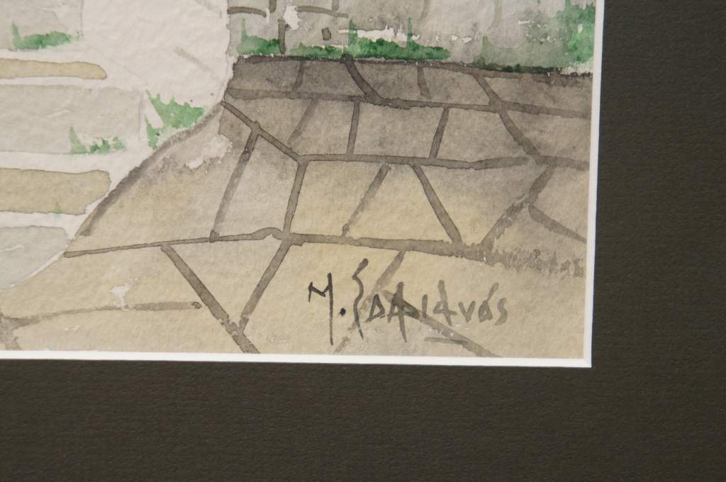Greek Artist Signed Watercolor Painting Cityscape Village Impressionist Framed
