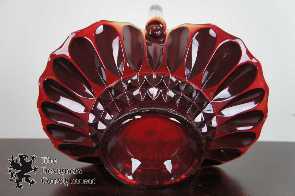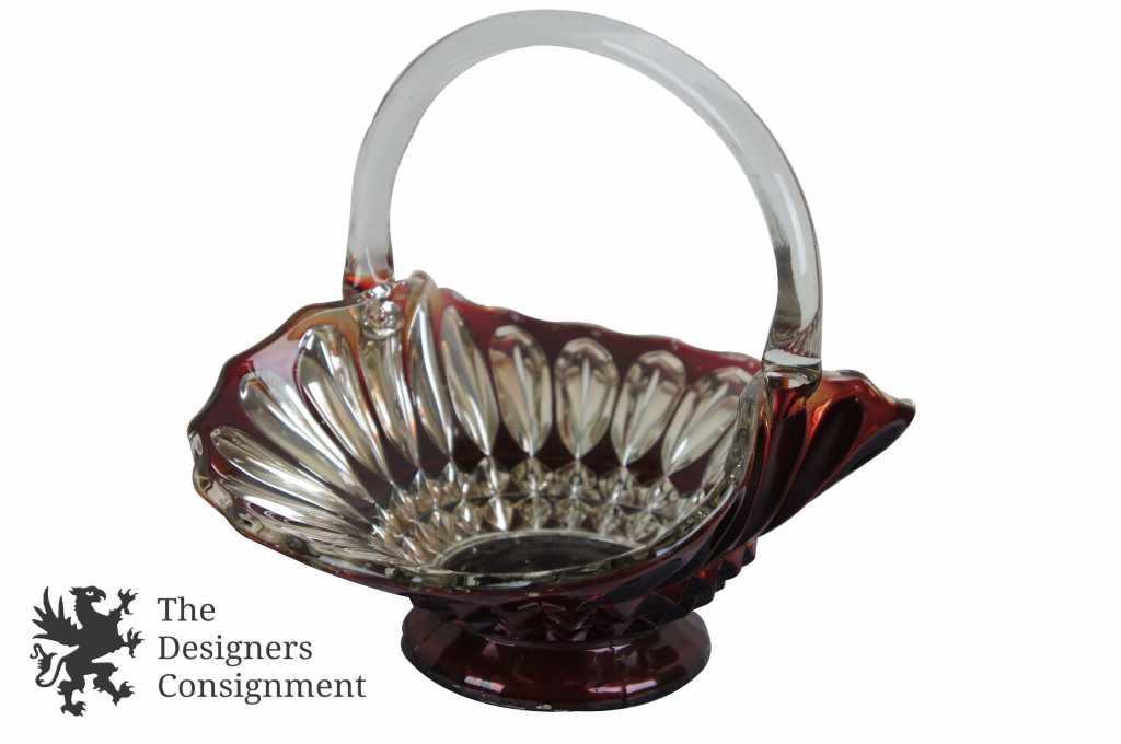 Vintage Crystal Cut to Clear Red and White Glass Bridal Wedding Basket Bowl