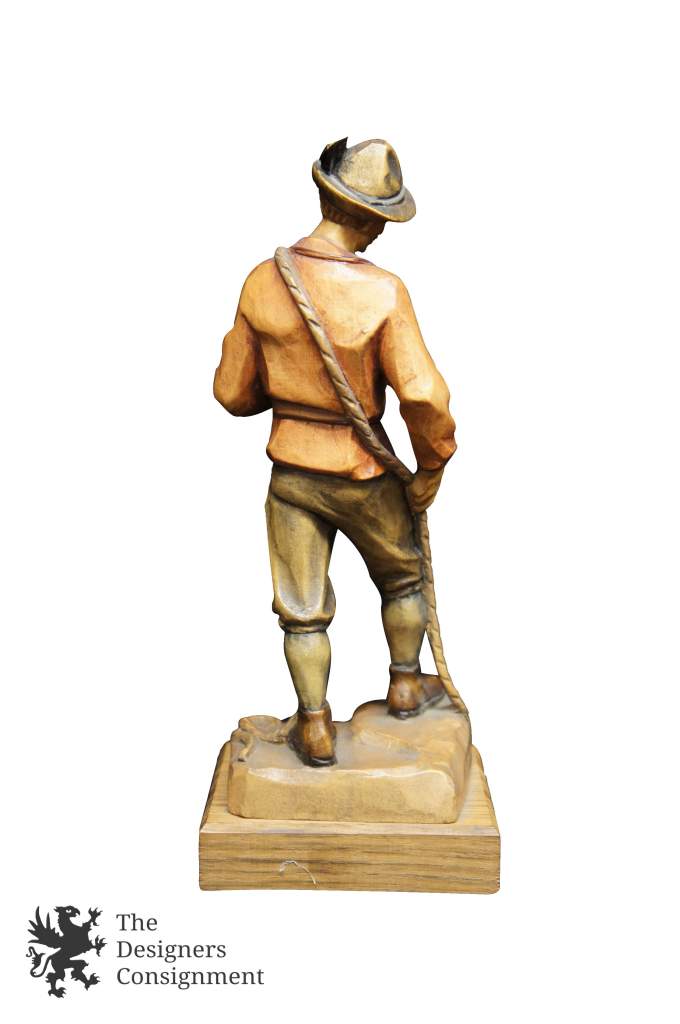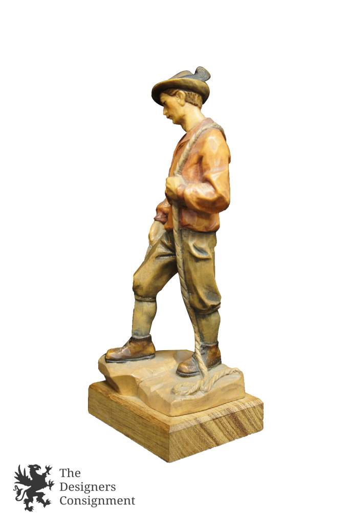 Vintage Hand Carved Dutch Figure Man Wearing Hat Carrying & Pulling Rope Anri?