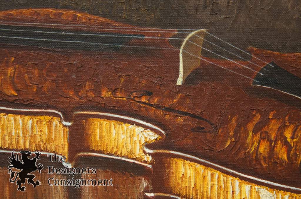 O. Pilenyi Signed Impressionist Still Life Oil Painting Flowers Violin Books 41