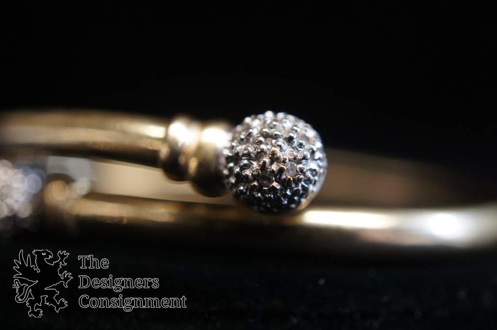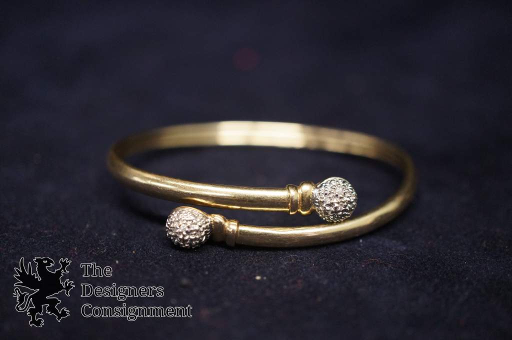 14K Gold Bangle Bracelet with White Rhinestone Chips