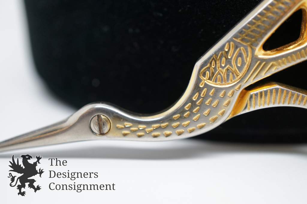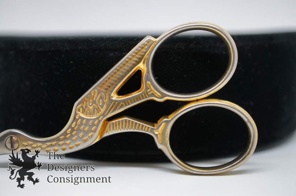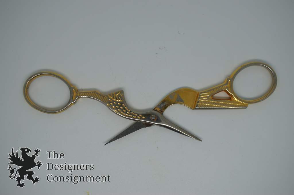 Vintage Gingher Embroidery Thread Sewing Scissors Bird Stork Italy Gold Handle