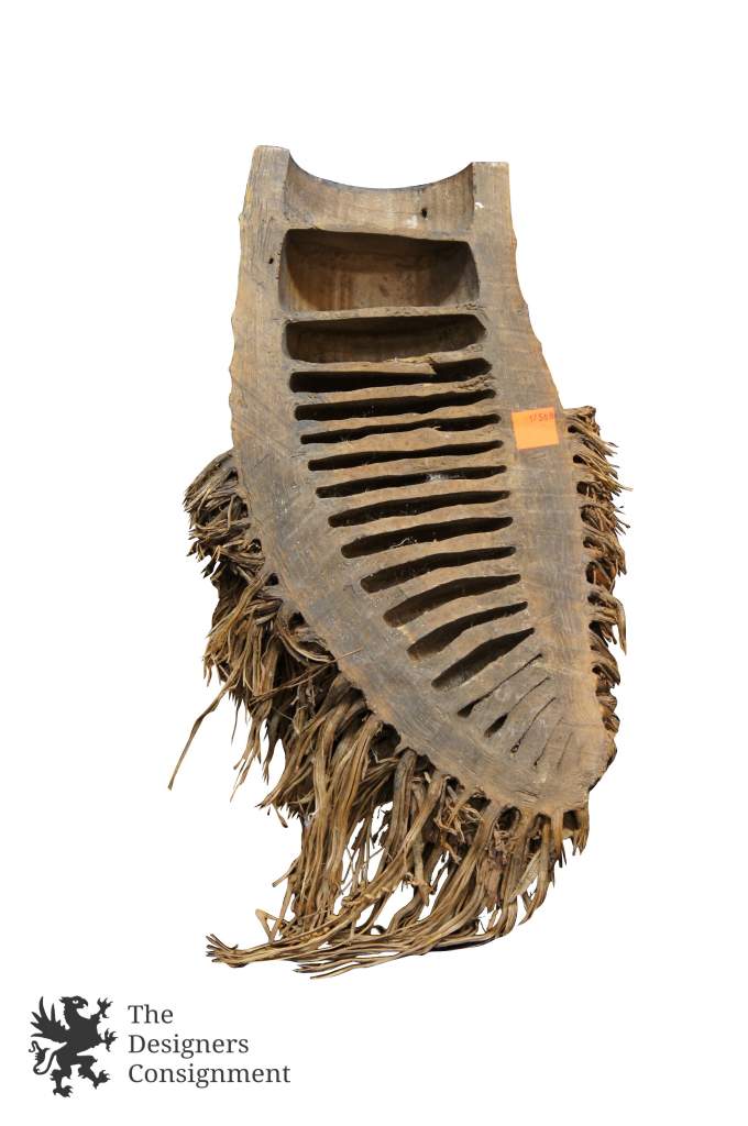 Primitive Hand Carved Island Mask Bearded Man Bamboo Hat Wall Folk Art 14.5