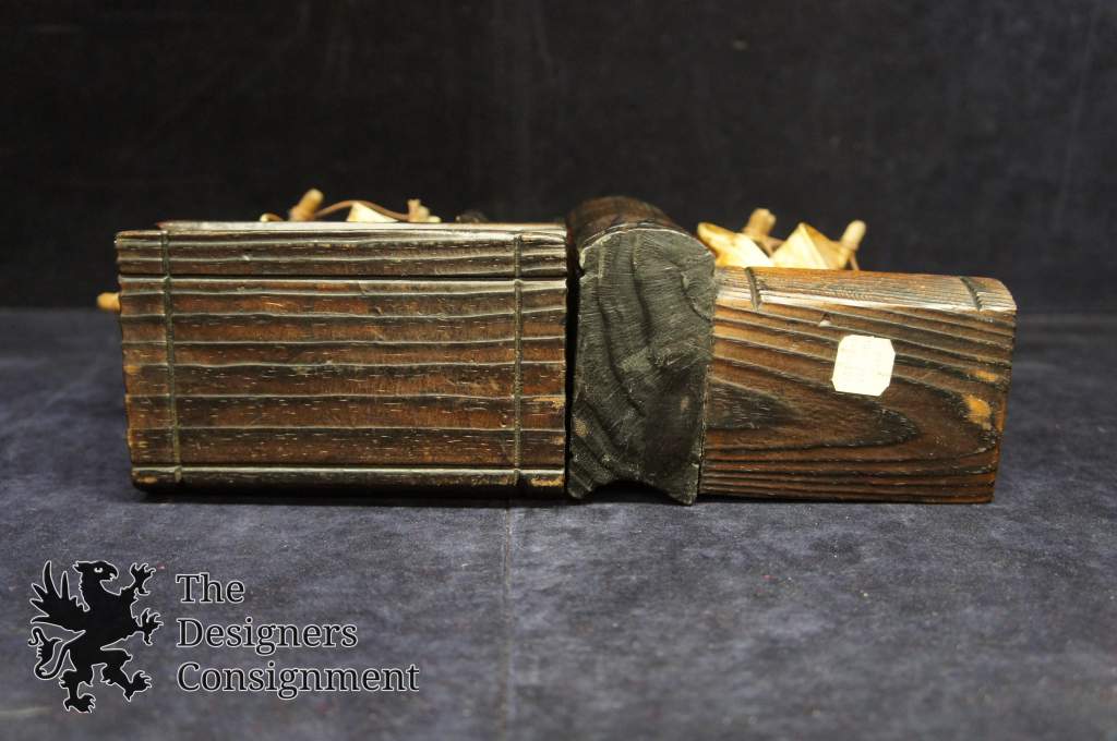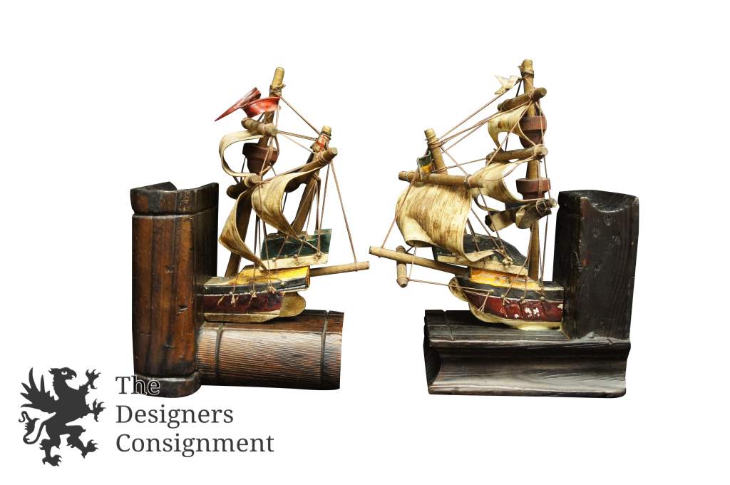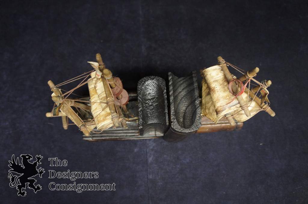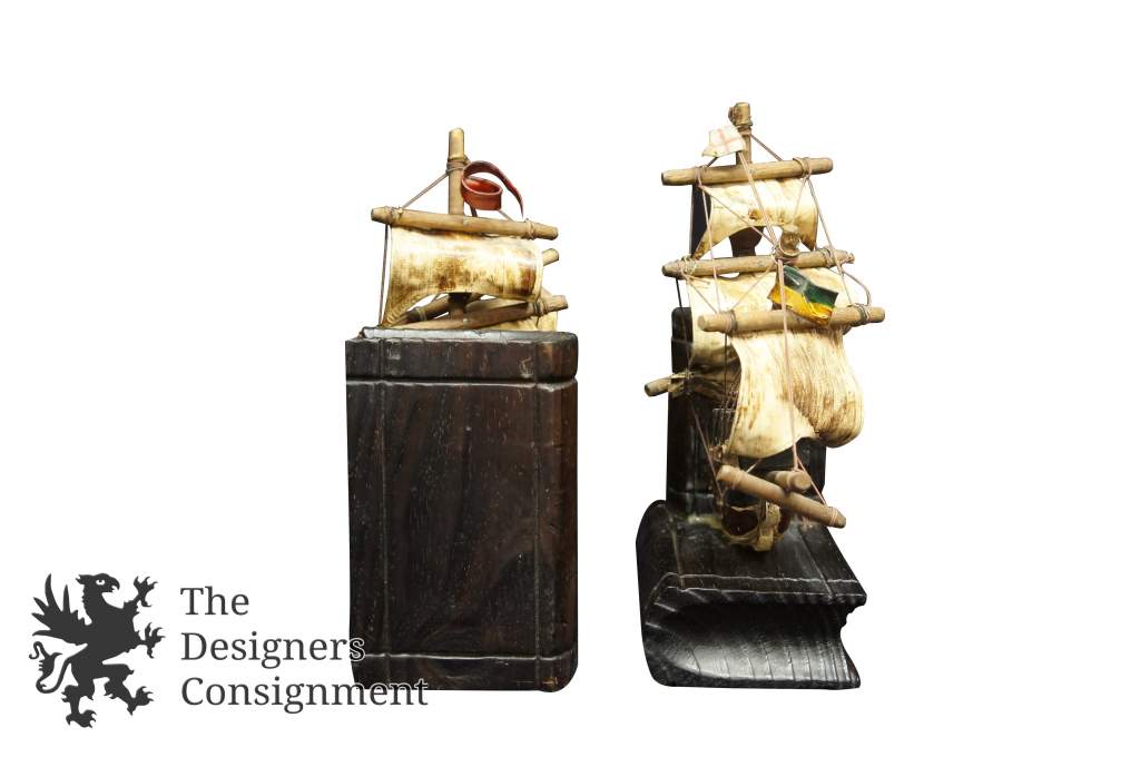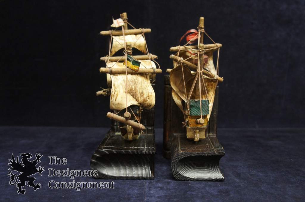 Carved Wood Model Sailing Ship Bookends Made in Spain Black Red Green