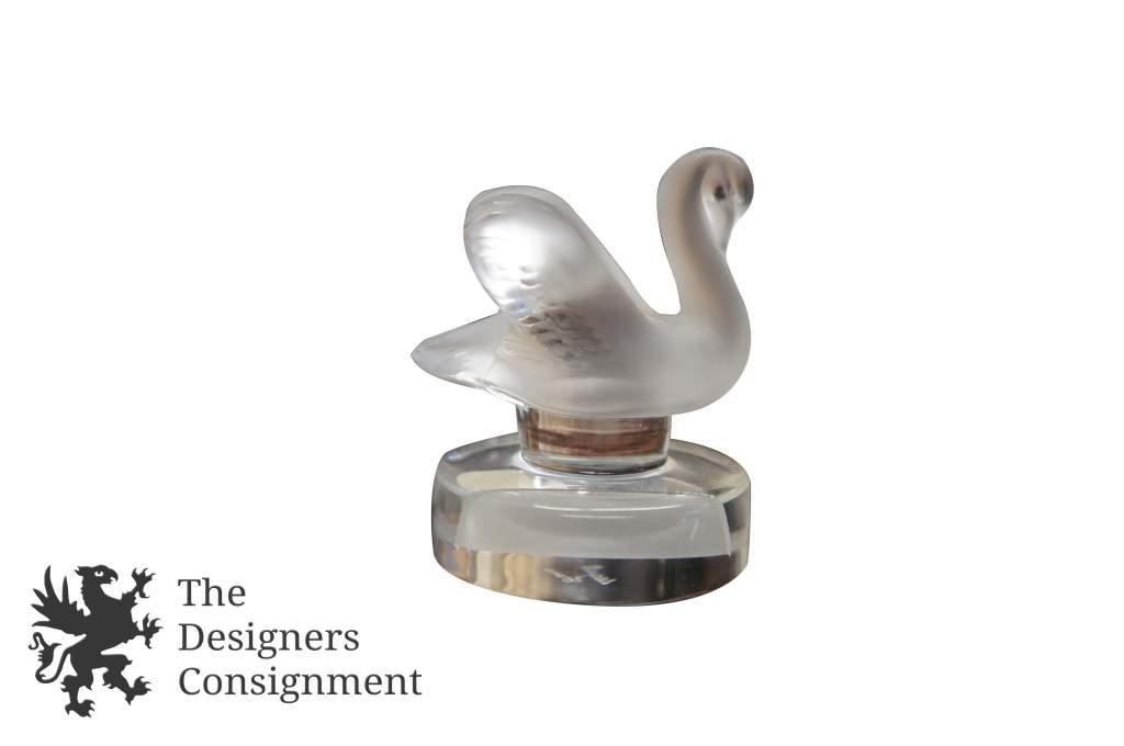 Lalique France Frosted Glass Swan Figurine Place Card Holder