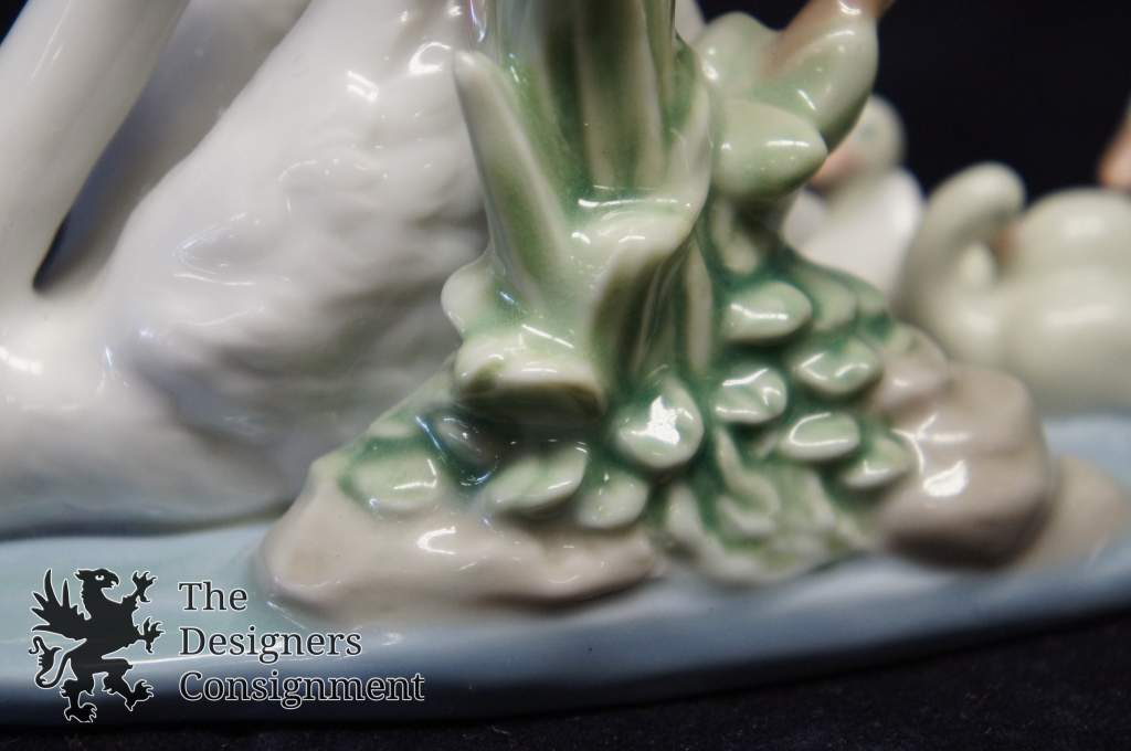 Lladro Spain Porcelain Swan Statue Figurine w/ Four Babies Cygnets and Cattails