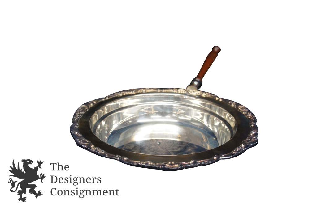Vintage EPCA Bristol Silver Plate Poole Pan with Wood Handle Floral Edge