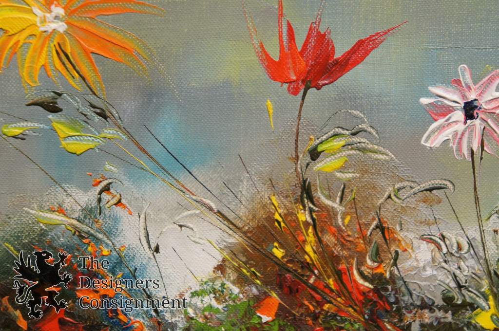 2 Colorful Vintage Impressionist Oil Paintings on Board Flowers Floral Pair