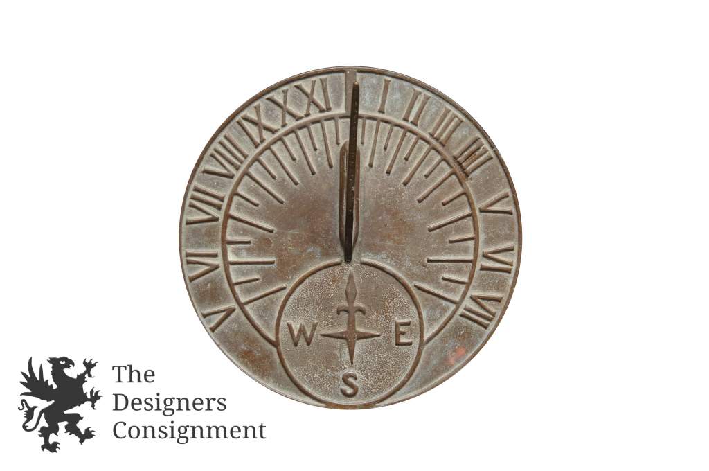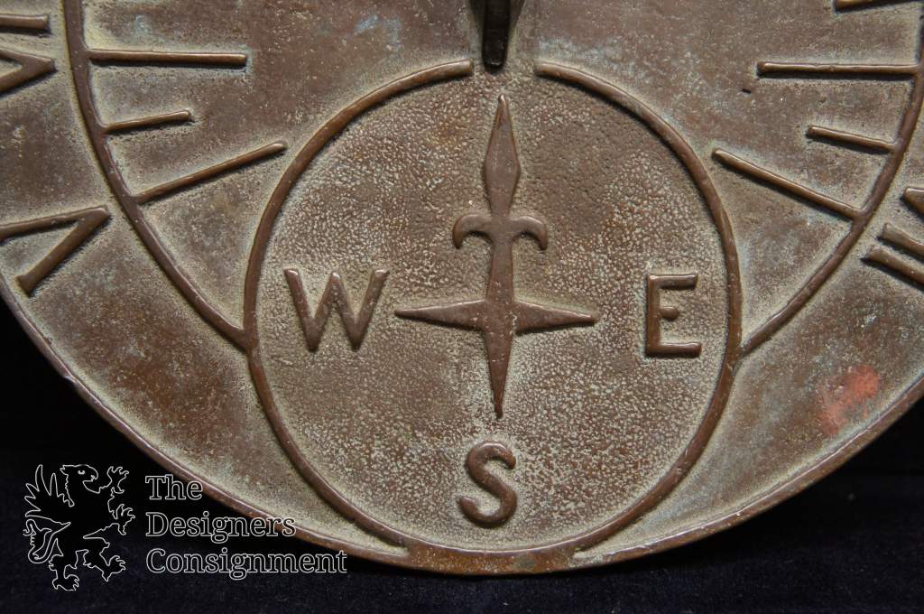 Rare Vintage 7.5" Bronze Sundial Roman Numerals Compass Rose Heavy