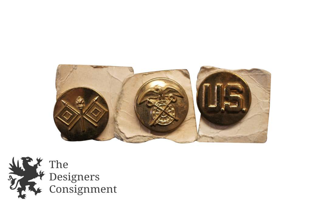 11 WWII Lapel Pins Brass US Military Regular Army Signal Corps Quarter Master