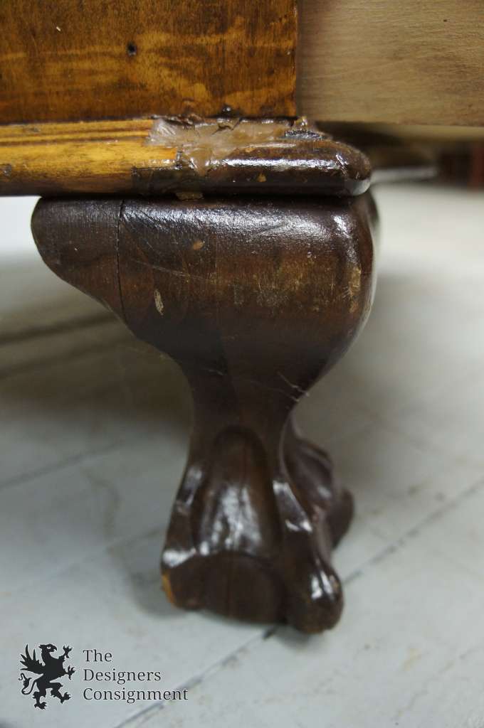 Gently Used - Past Repairs; Finial Re-glued/Leans Forward; Door has Trouble Opening Smoothly; Visible Wood Filler from Repair; Desk Surface Needs Assistance Closing; Some Fading