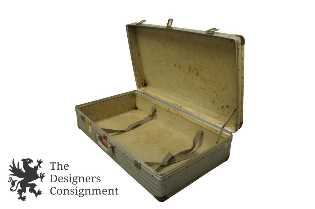 Vintage 33" Aluminum Suitcase Luggage Travel Ribbed Exterior Retro Band Storage 352330652843