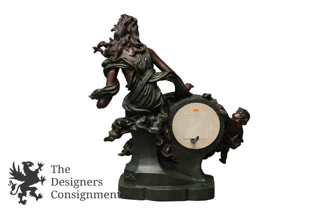 A nice reproduction Victorian Style Mantel Clock. Features a cherub hanging off the left, countered by a Greek Goddess along the right. The clock is Quartz, with Roman Numerals. Battery Powered.