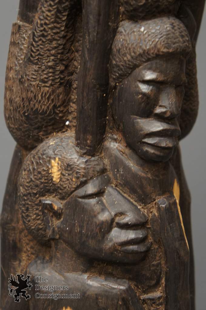 Intricately hand carved ebony figure. Each Tree of Life figure is unique to its own, as they cannot be exactly reproduced. Approximately 27" tall. Great for display.