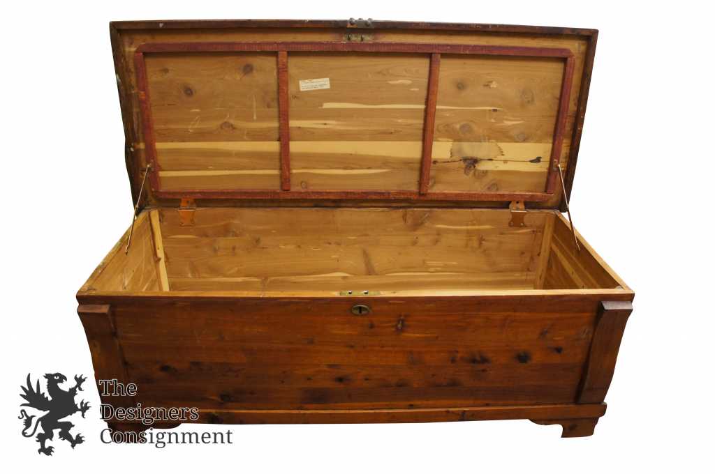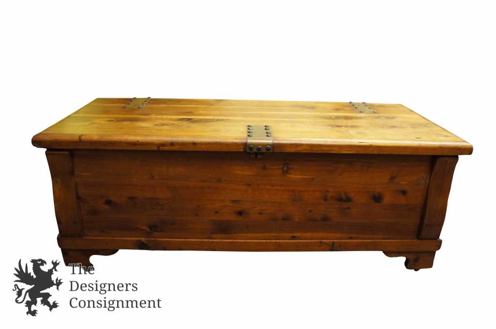 Early American Style distressed pine trunk. Cedar lined with brass hardware