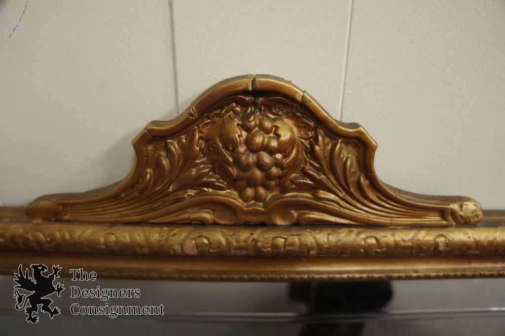 A beautiful antique 3 panel mirror with gold finish. The two outside panels have been replaced with needlepoint scenes giving it a unique look. Central mirror is etched with a crisscross pattern. A great addition to any setting.