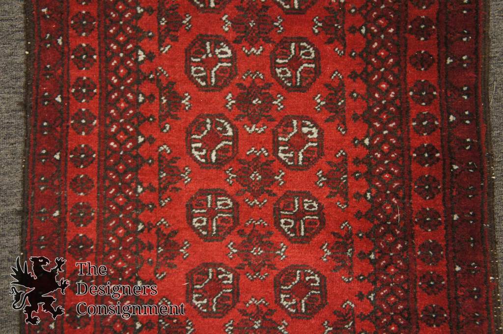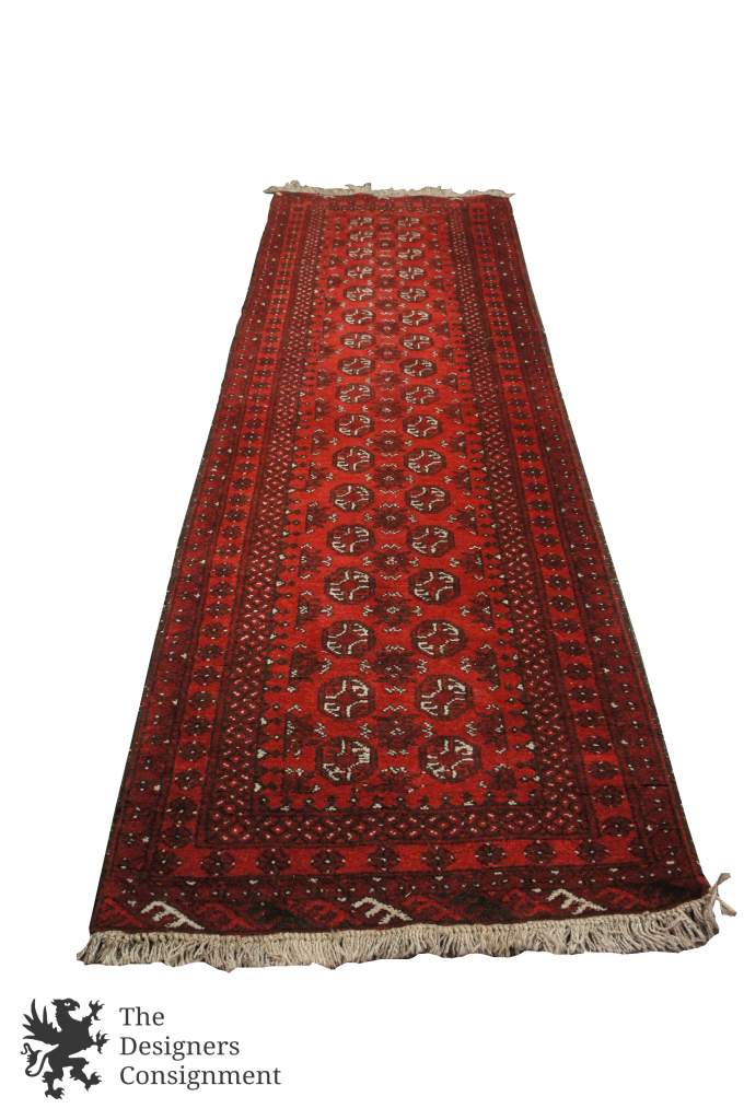 990's Afghan Turkmen Oriental Rug Hall Runner Red Black White 2'6'' x 8'5'' 352330898545