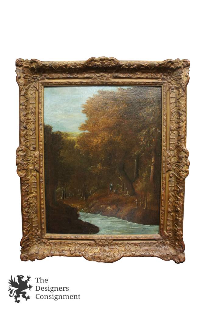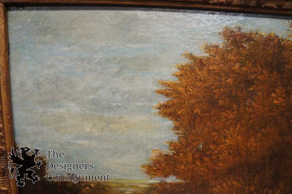Landscape in good condition considering age. Could use a cleaning. Frame Not original to the piece. Some splitting in the gesso