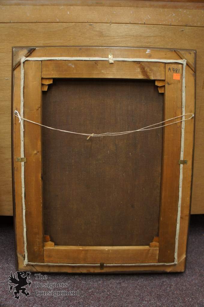 No repairs or damage. Has been relinedwith new stretchers. Frame is newer. Some marking and finish loss to frame.