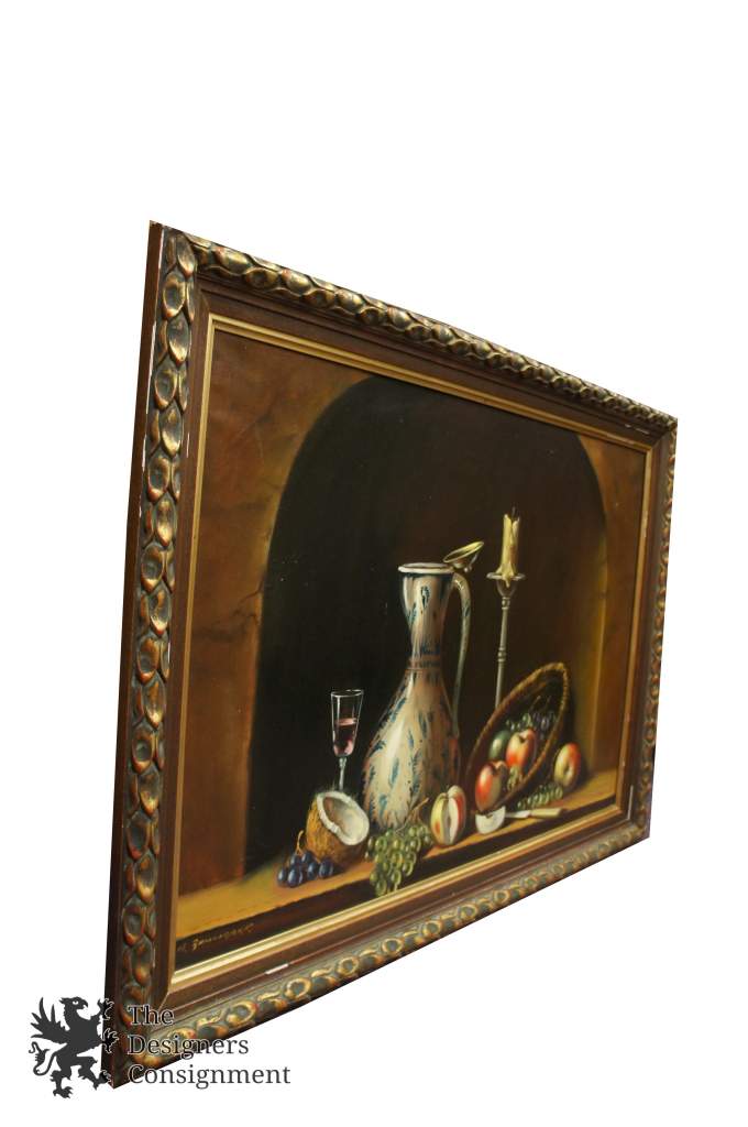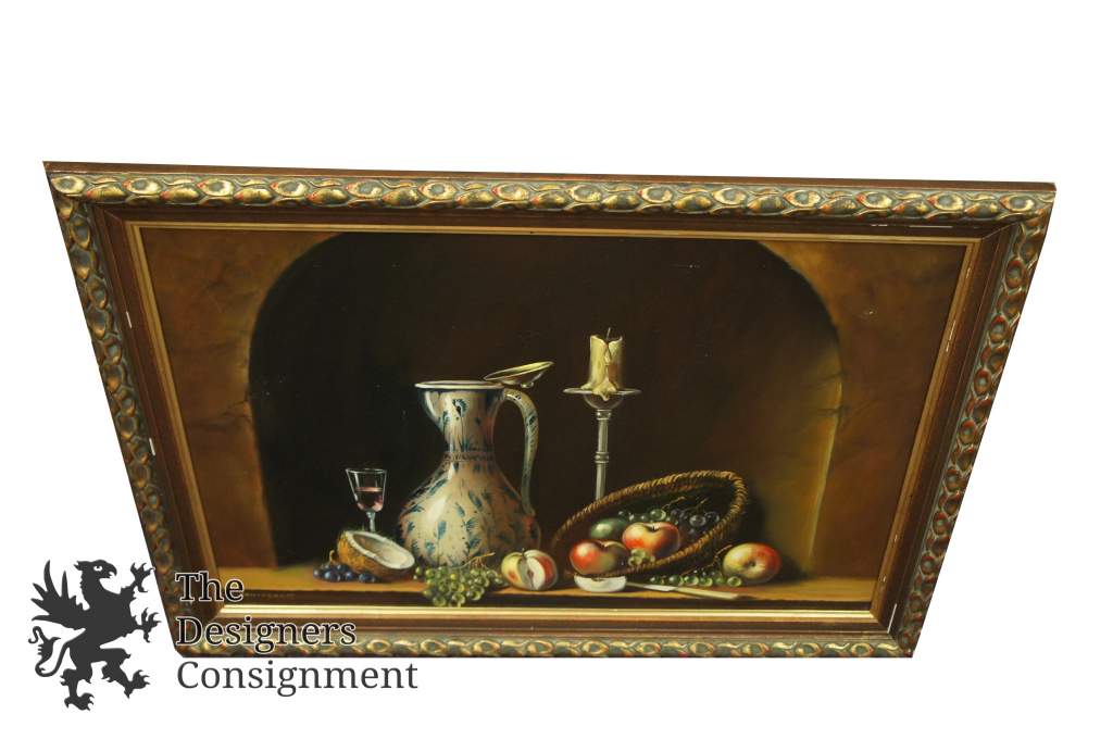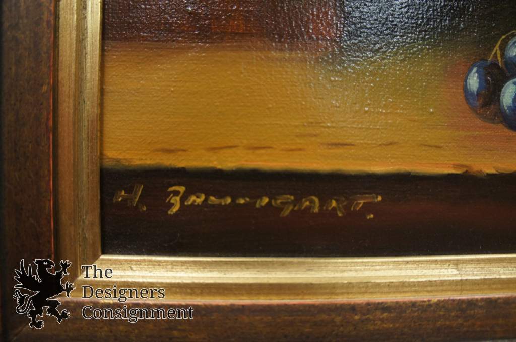 Helmut Baumgart is active/lives in Germany.Helmut Baumgart is known for painting. Born in 1935. The still life is life like in detail. The pitcher, fruit, wine and candleare perfectlyplaced between the arcade seen in the background. Signed in the bottom left.