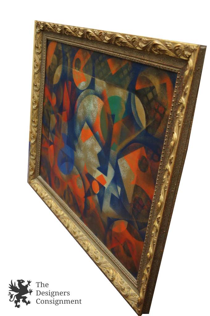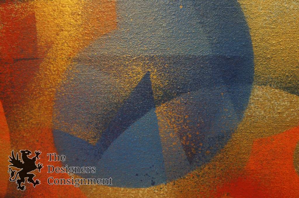Elegant Geometric Oil Painting on Canvas. Circa 1970's. Signed by Fredric Evans. The painting is framed in gold tone with floral accents.