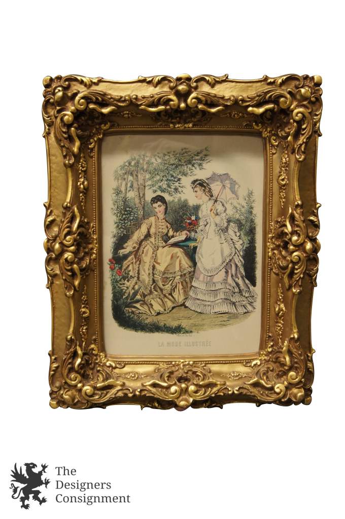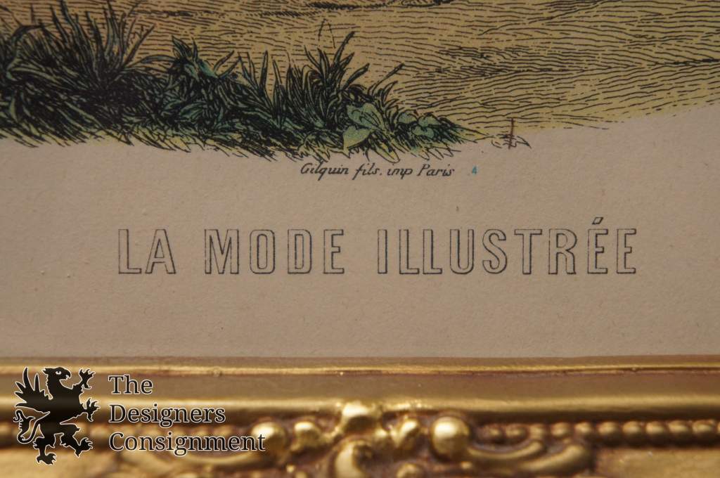 Beautiful pair of fashion (Godey) engravings from the 19th century from La Mode Illustree. Each is neatly framed in gold
