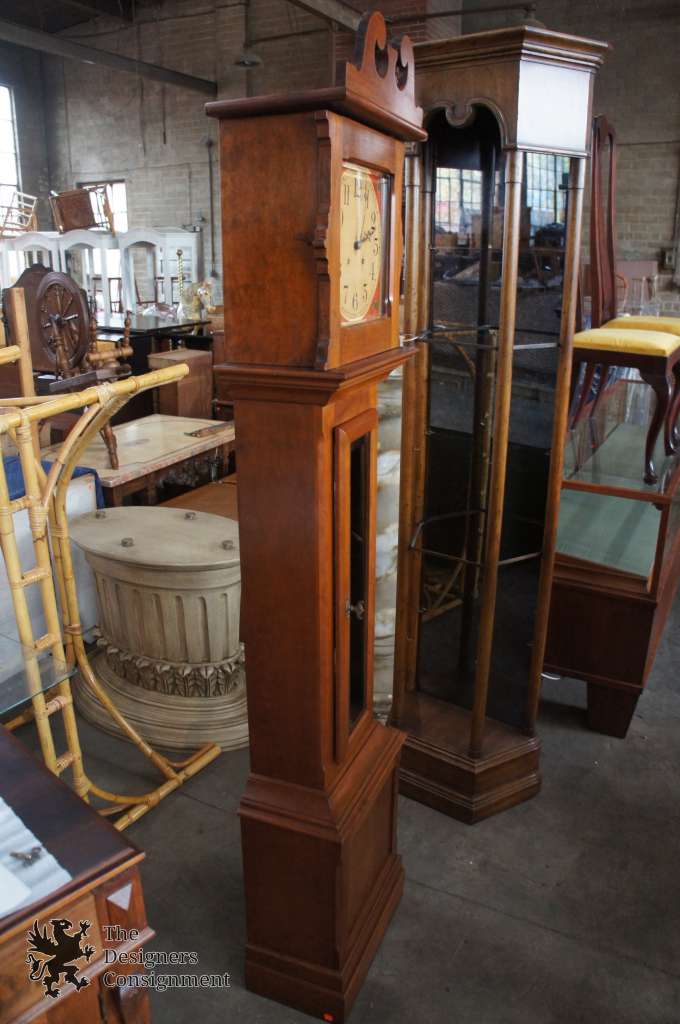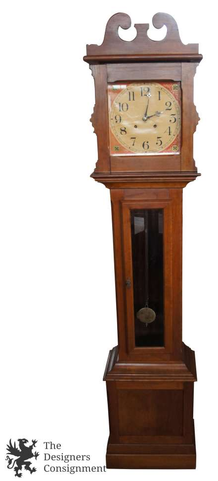 Turn of the Century Gilbert Clock Co Movement. The case itself is older then the movement. Made from walnut with beveled glass panels. Face is metal and stamped 1753. Current movement was a later replacement for the weight driven movement that predated it. The clock has a subtle chime.
