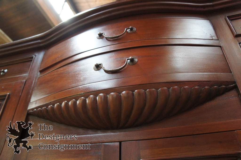 Traditional Mahogany Buffet or Server. Features a partialscallopedbow-front. Beautifully contoured with plenty of space for storage.