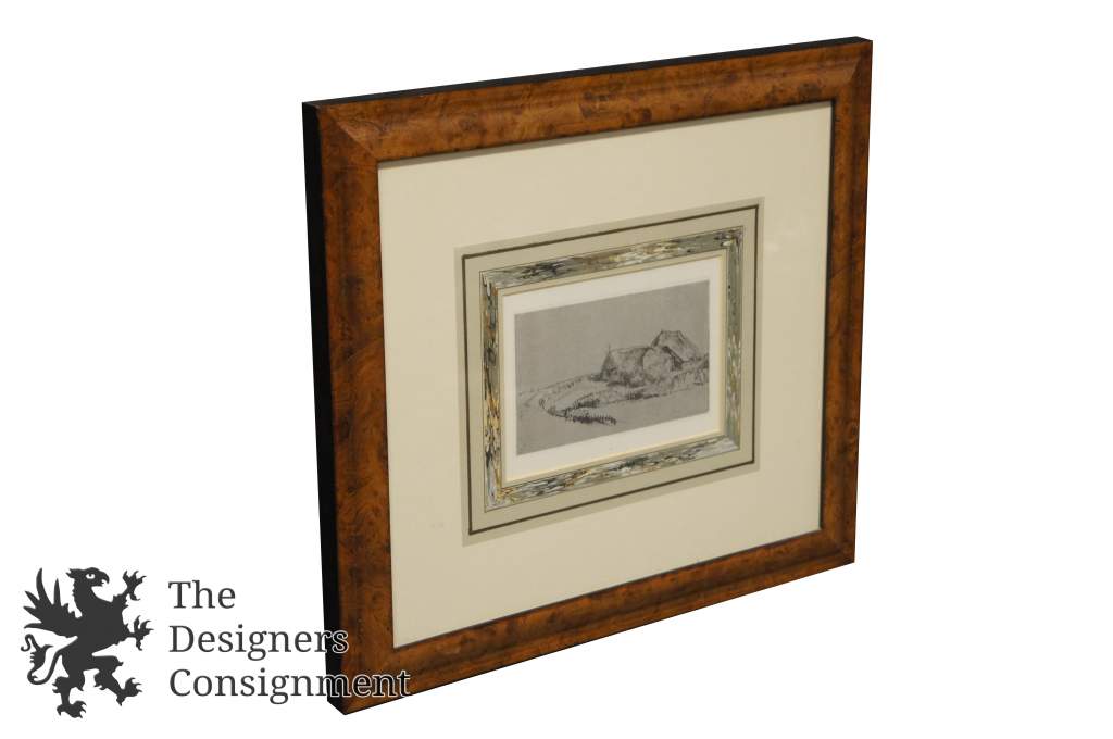 A beautiful reprint of one of Rembrandt's line drawings. Features a country scene. Finished in an olive ashwood burled frame