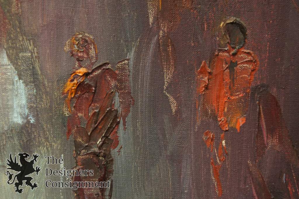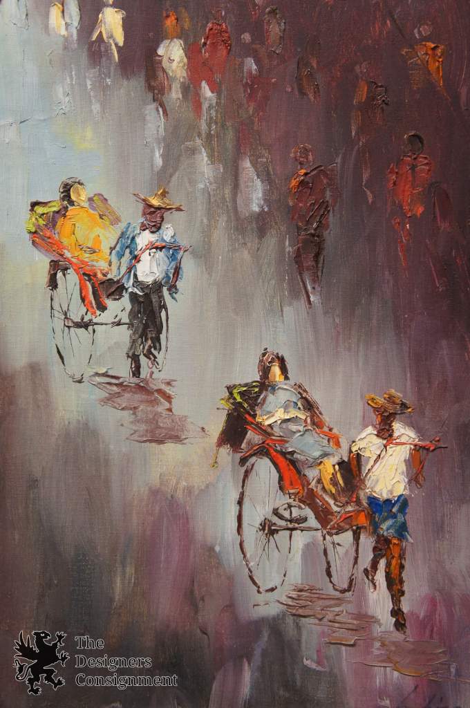Impressionist oil on canvas. Oriental scene with Rickshaws. Beautifully painted, and signed along the lower right.