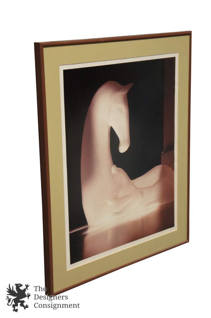 Stuart Vesty is known for taking unique equestrian photographs. His works have been on the covers of many books and magazines. This piece is some what of a reversesilhouette showing a horse and mare. Framed with matte.