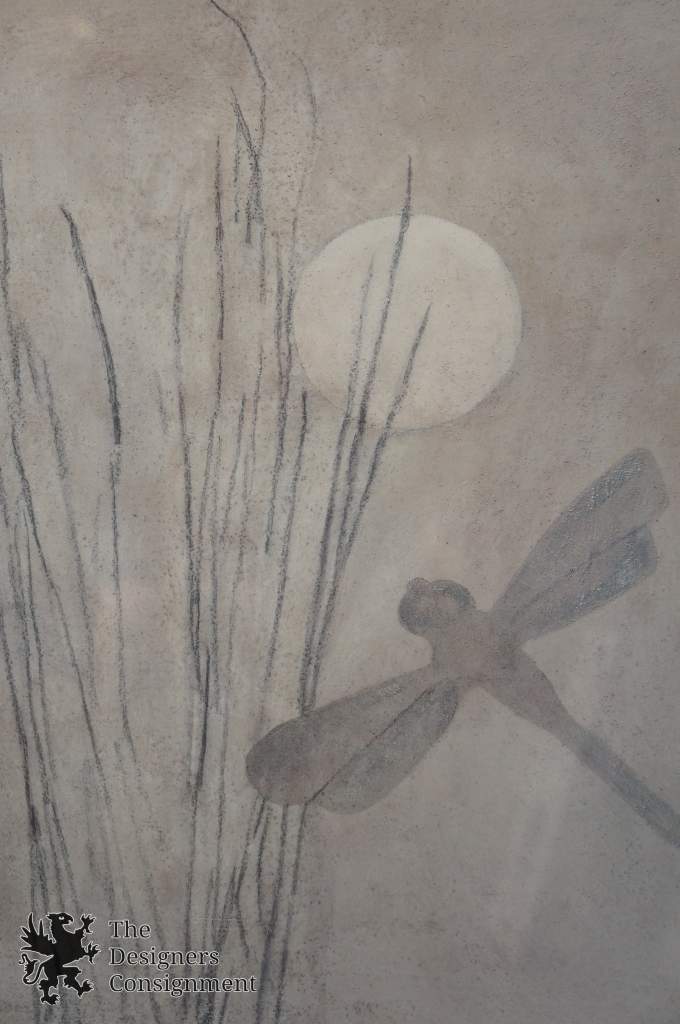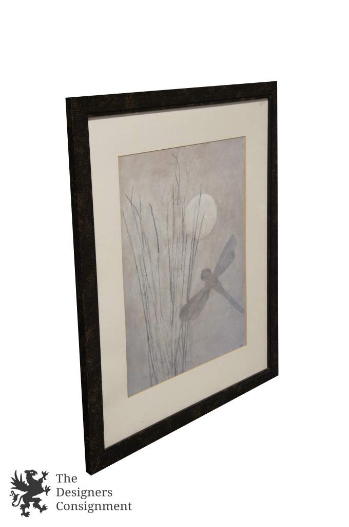 Pastel Dragonfly & Full Moon with Long Grass Leaves Lithograph Print Signed Jean 232735699591