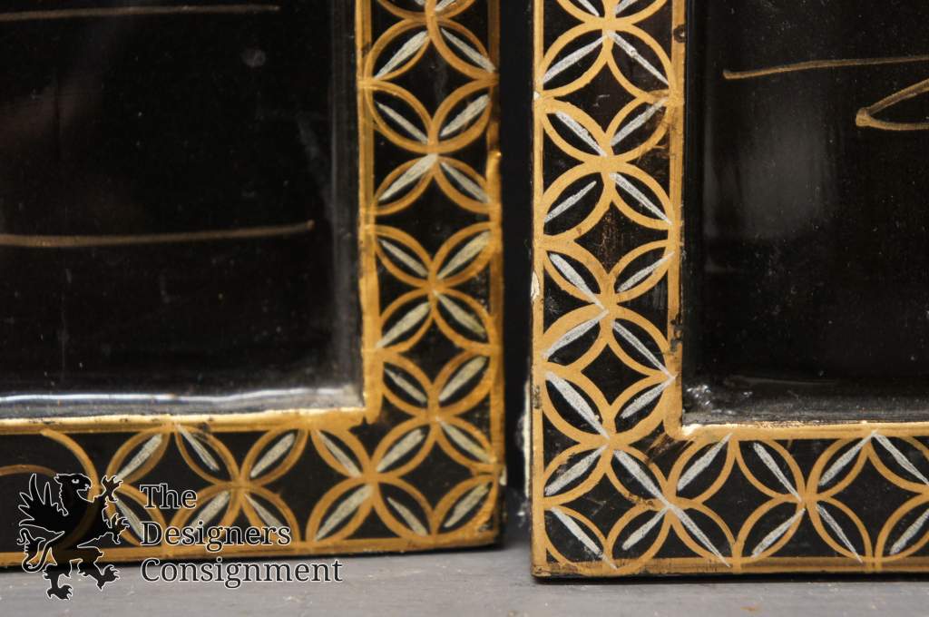 Vintage Mother of Pearl Carved Landscape Scenes Asian Seascape Lacquered Frames 232735284202