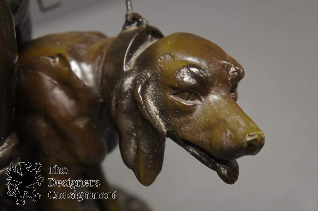 After Auguste Moreau Signed Bronze Figure. Featured is a boy with walking his dog on marble base