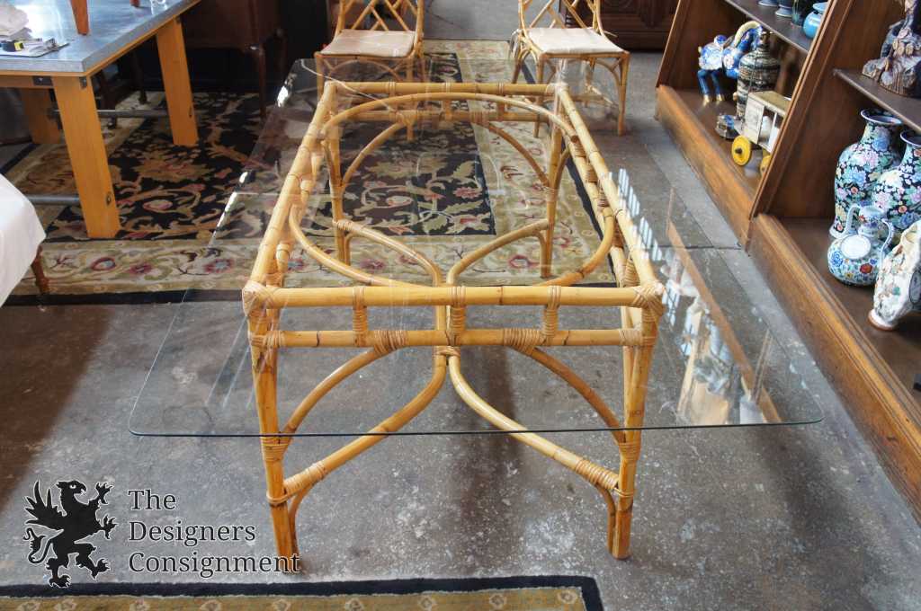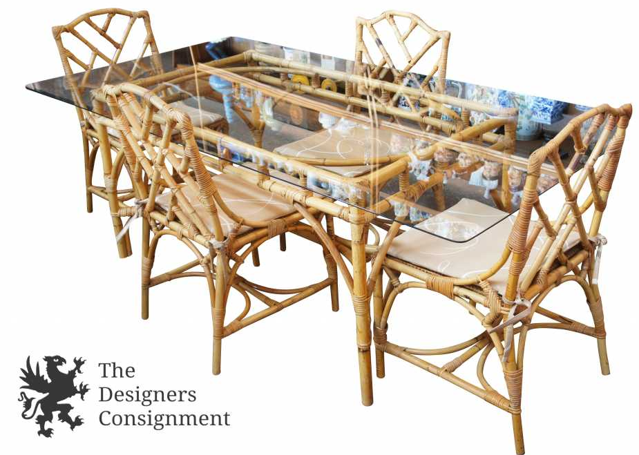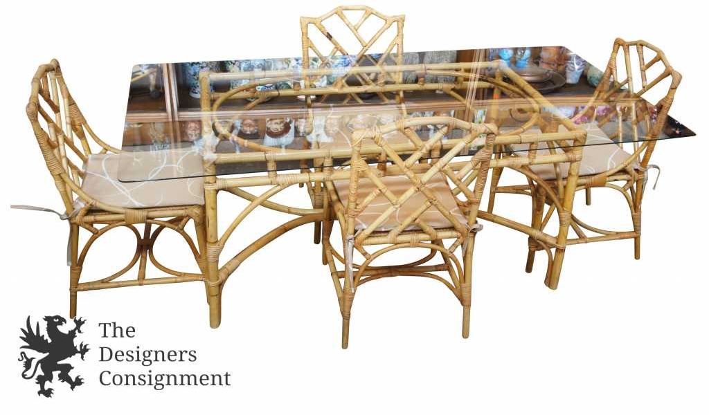 Hollywood Regency/ Chinese Chippendale Bamboo & Rattan Dining Room Set.