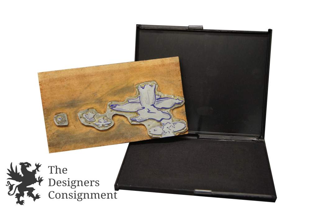 Lot of 45 Vintage Advertising Metal Stamps Copper Plates & Re Inkable Stamp Pad