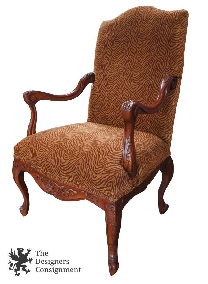 Complete with a high back, carved arms and Cabriole legs. Most likely Ethan Allen, and possibly Henredon based on its orging, but missing its tag.