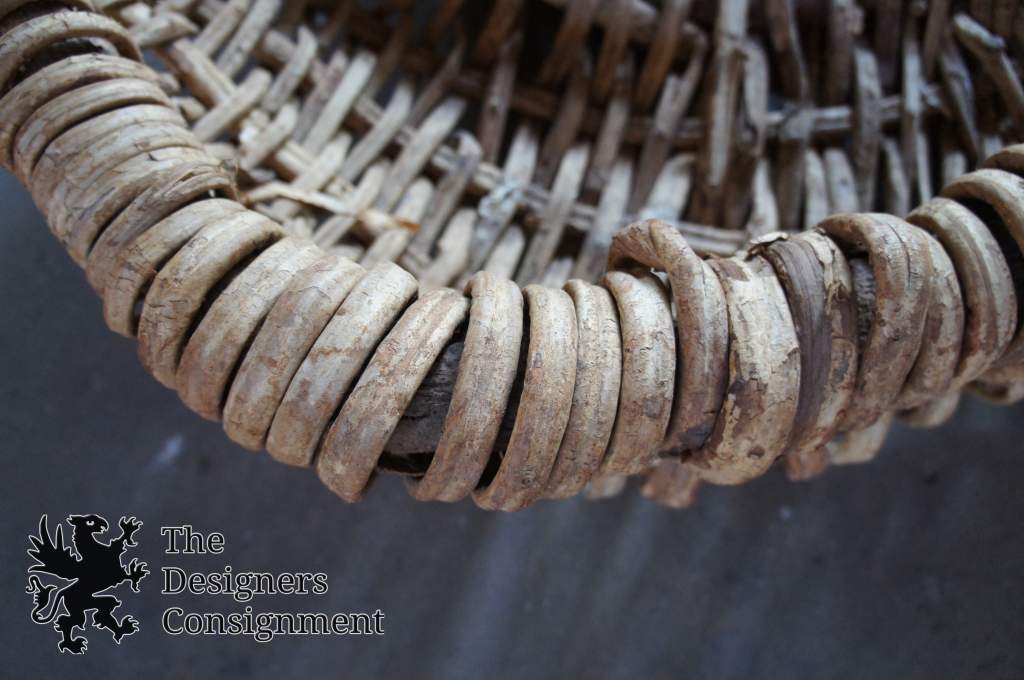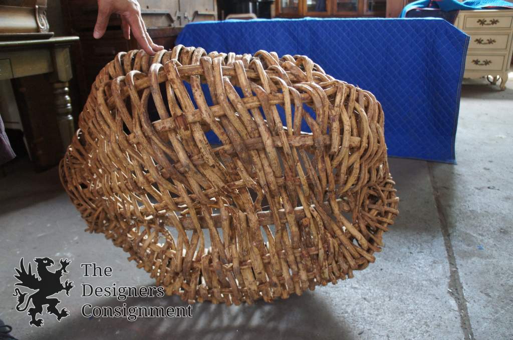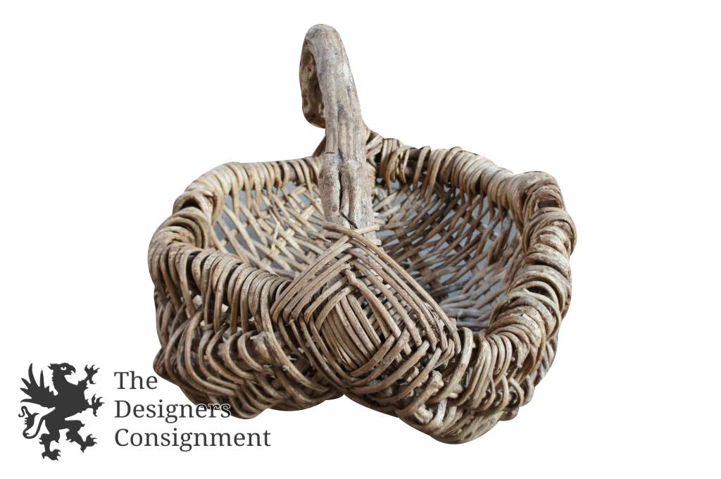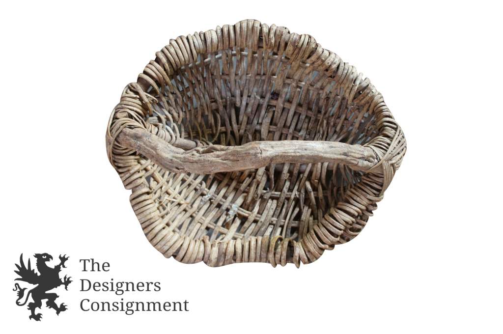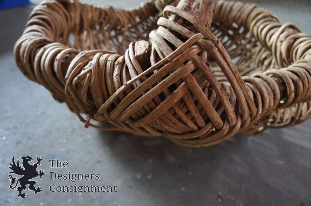 Vintage Primitive Hand Woven Basket with Branch Handle Cornucopia Harvest