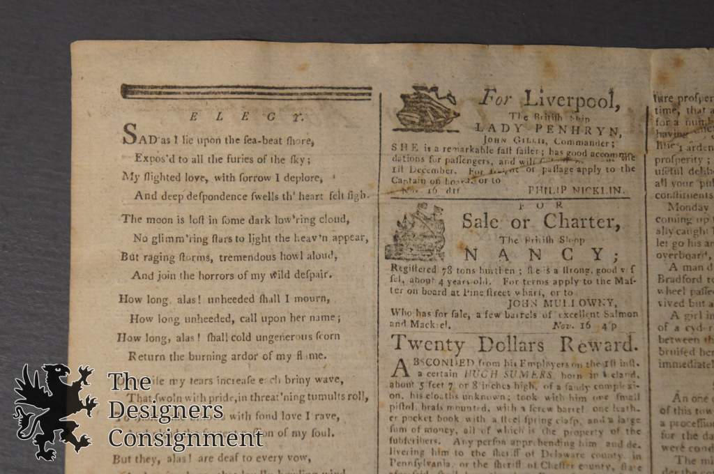 Antique Newspaper The Pennsylvania Packet & Daily Advertiser November 17, 1789