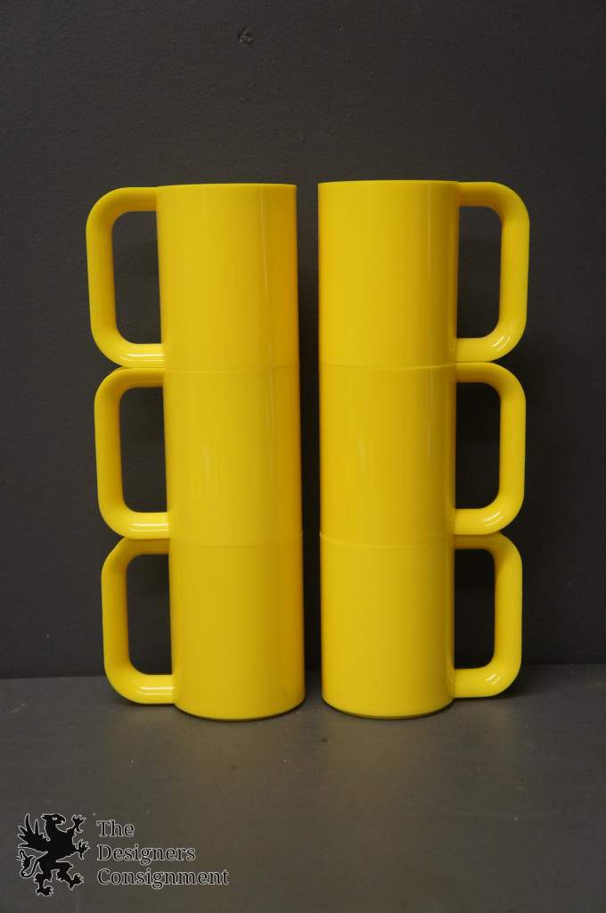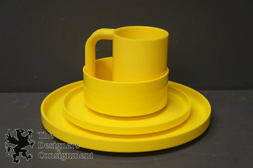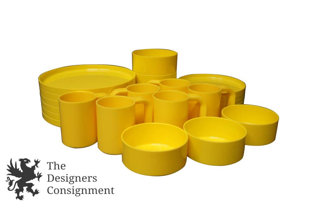 Vtg 24 Pc Heller Yellow Plastic Picnic Dining Set Massimo Vignelli Maxmug USA