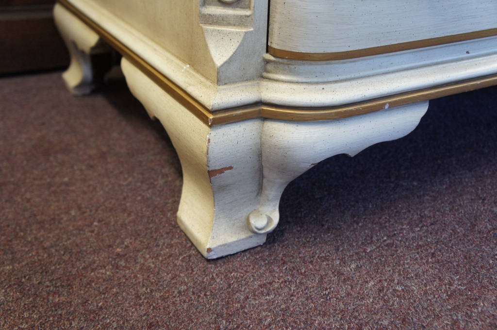 American Signature French Country Distressed Table Inlays Drawer Cabriole Legs
