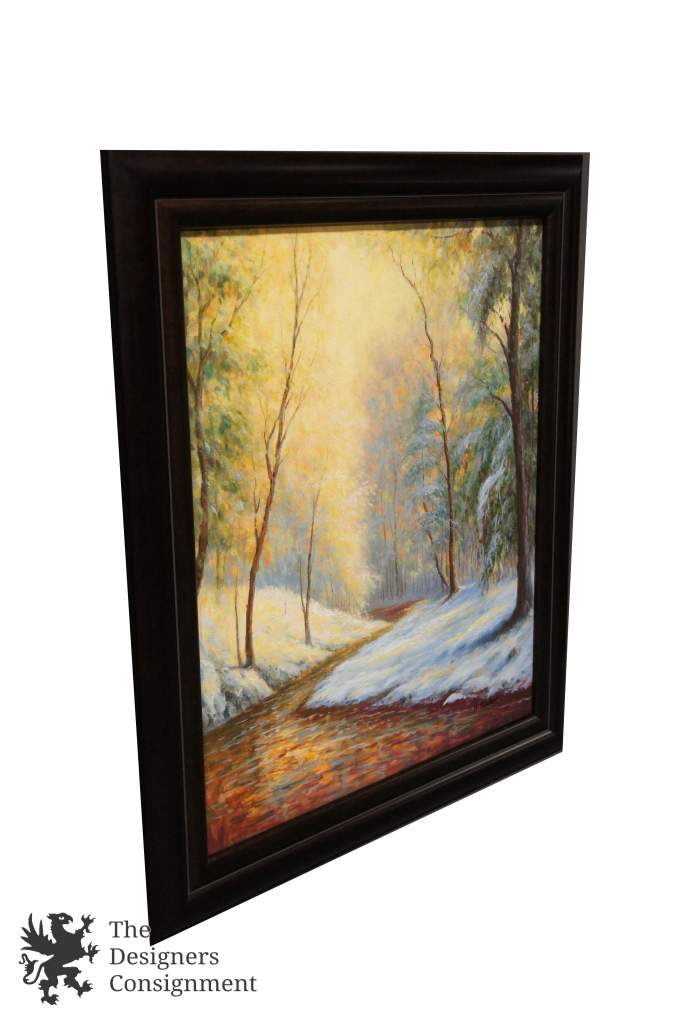 A beautiful landscape showing a view along a stream through the woods in the dead of winter. Signed D. Fischer. Amazing color and attention to detail.