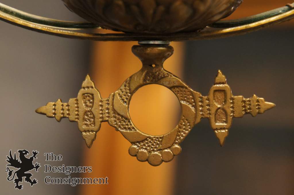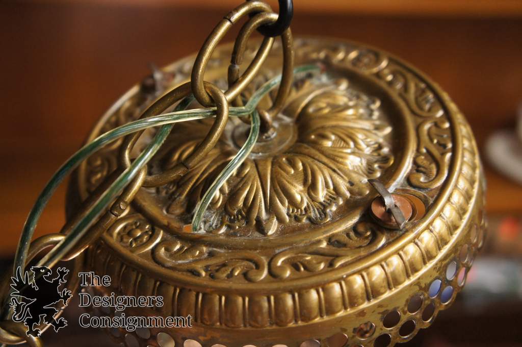 Antique Hurricane Oil Lamp Converted Chandelier Pierced Brass W/ Drop Crystals