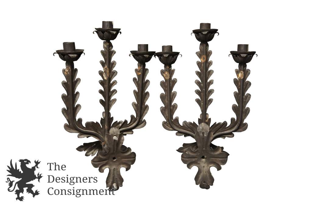 Beautiful pair of Forged Iron wall sconces with acanthus accents.