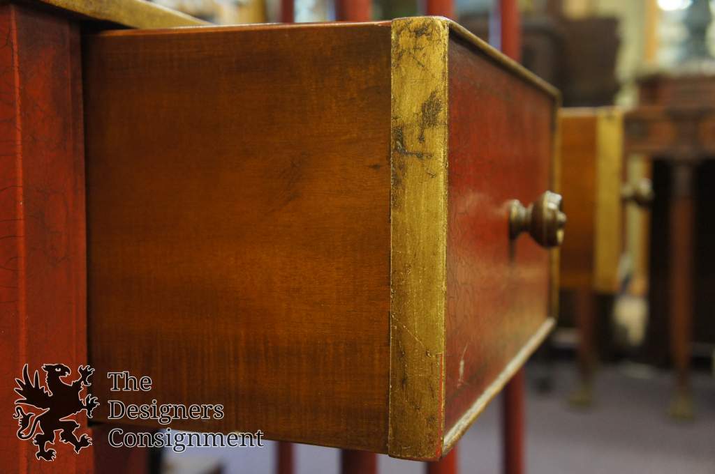 Robert & Robert a collaboration by Randy and Skip Culler. Cerise & Gold Etageres. Leathery feel with great character. The perfect addition to any room.