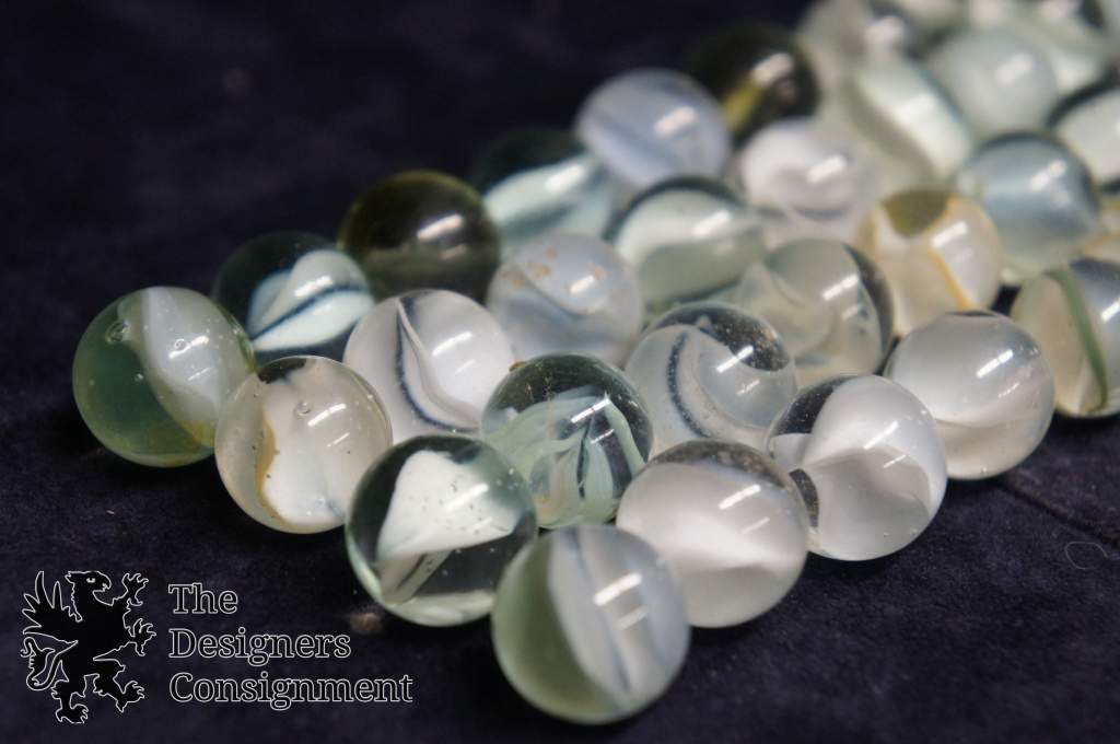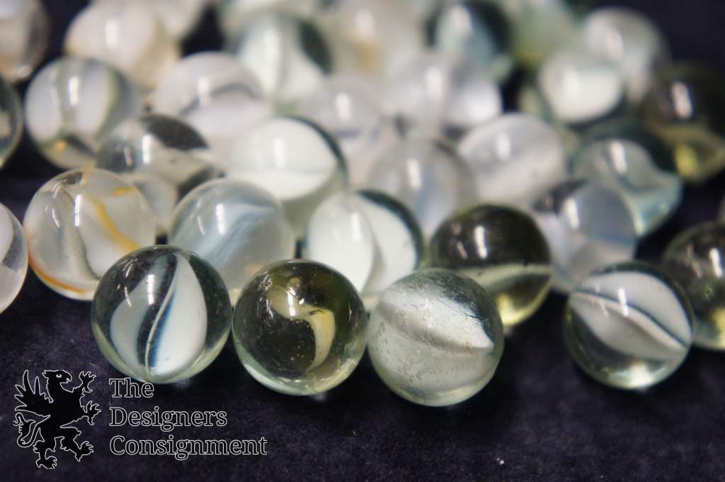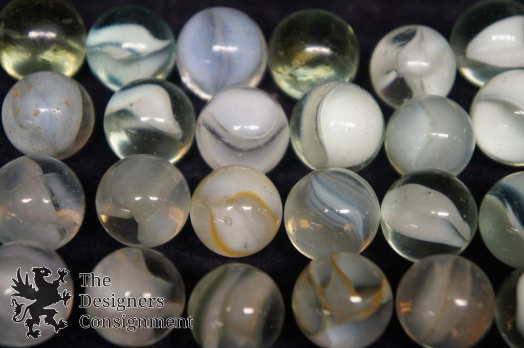 40 Vintage Machine Made White Cats Eye Banana Core Glass Marbles Toys