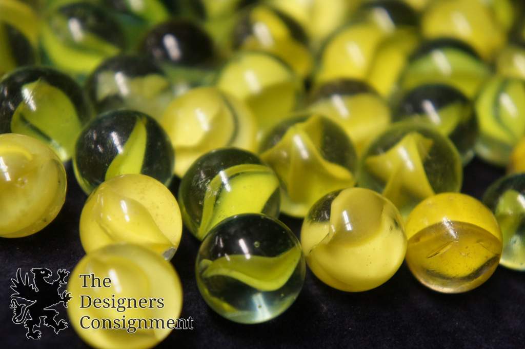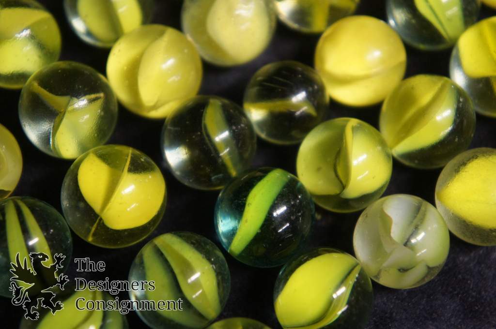 79 Vintage Machine Made Yellow Cats Eye Banana Core Glass Marbles Toys