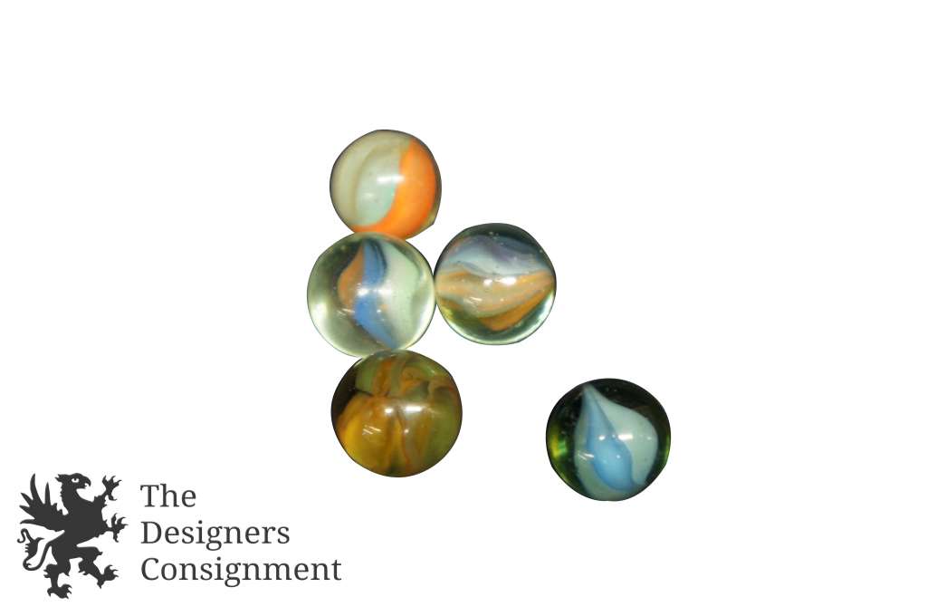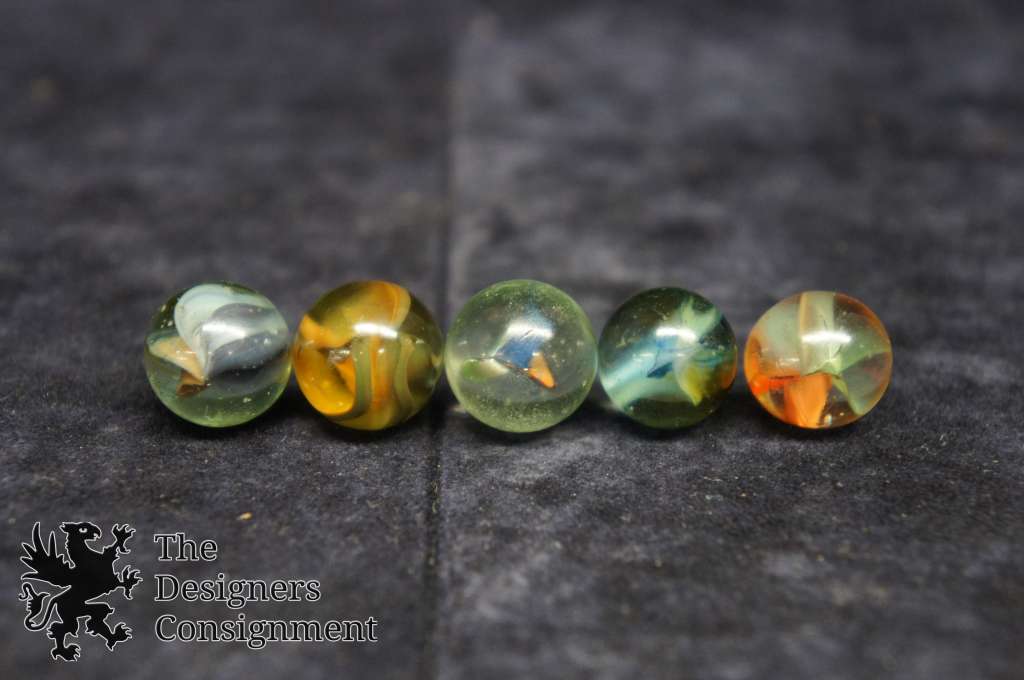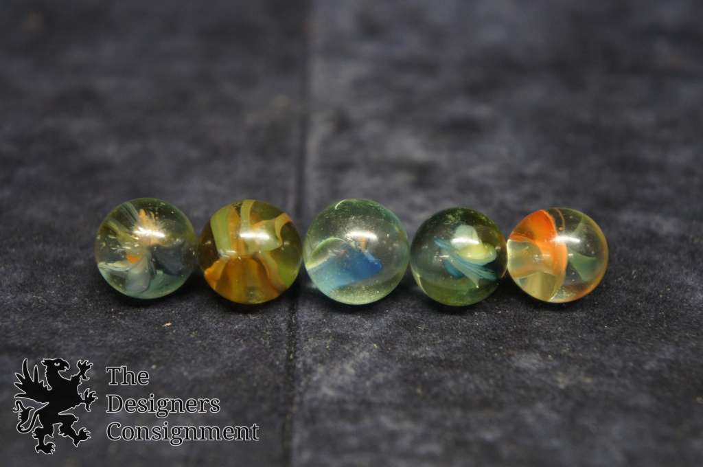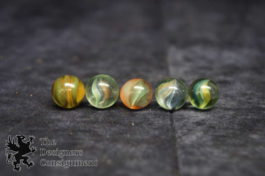 5 Vtg Tricolor Machine Made Glass Cats Eye Banana Core Marbles 16mm Corkscrew 352330875239