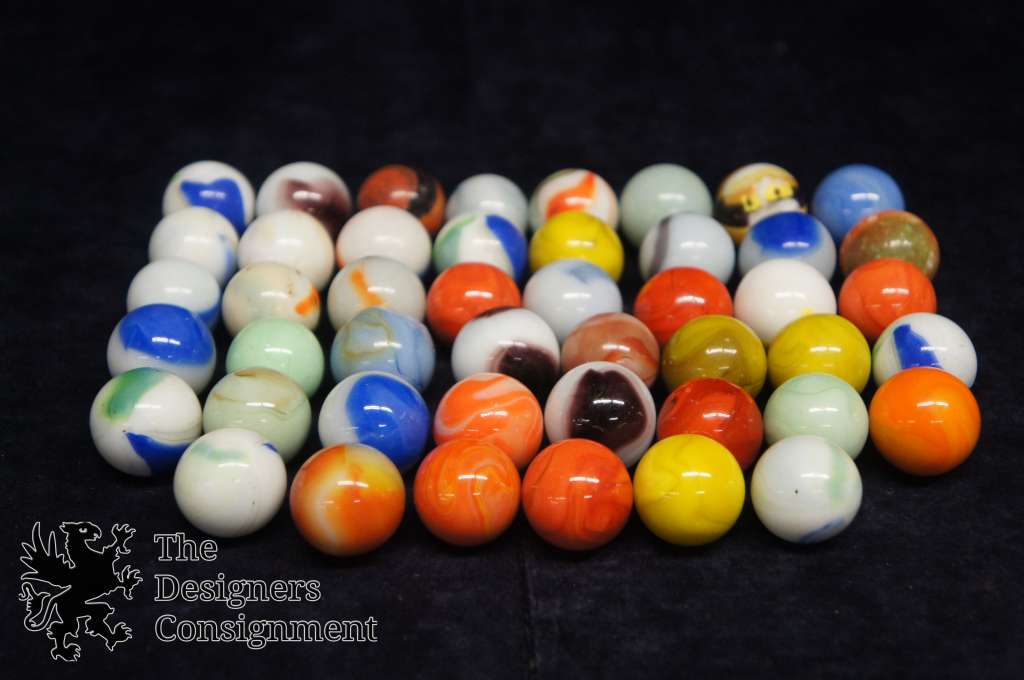 46 Vintage Assorted Oversized Opaque Swirl Glass Marbles Shooter Toys Games 232735612137