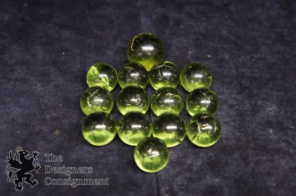 14 Vintage Machine Made Olive Green Clear Glass Clary Marbles Grooved Creases 232735152921